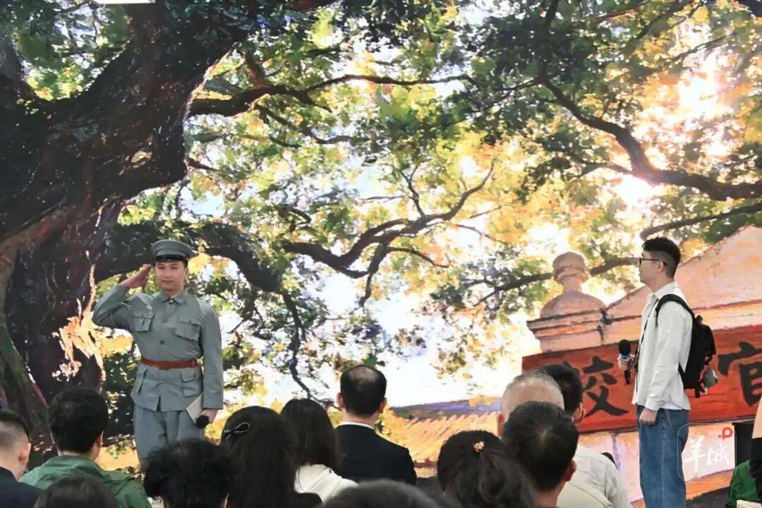 情景短剧《榕树下》以校门前200多岁的古榕树为叙事载体,通过黄埔青年榕下求学、历史讲解、跨时空对话等场景,生动再现百年前黄埔学子以笔为戎、矢志救国的热血画面,让观众在沉浸式演绎中感悟古榕承载的黄埔精神。