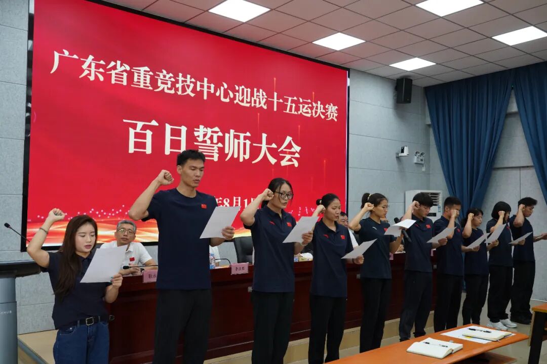 百日冲锋,正当其时!重竞技中心将以本次誓师大会为新的起点,继续狠抓备战训练,提升技战术水平,强化作风建设和思想引领,全力以赴冲刺第十五届全运会!